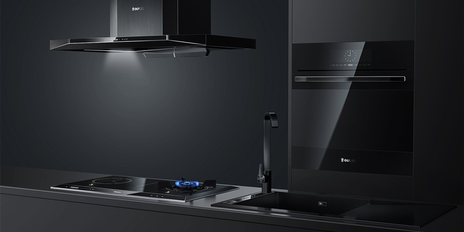 外觀上,該系列廚房電器外觀采用黑色鋼化玻璃,配上高亮銀色、玫瑰金的航空鋁材,按照美學比例進行幾何分割,給人高端價值的印象。油煙機內(nèi)部采用內(nèi)單層O型過濾網(wǎng),外平板側(cè)吸過濾,內(nèi)外結(jié)合油煙徹底分離,健康環(huán)保。精確的45度黃金斜角敞開設(shè)計,防止用戶意外磕碰。整體采用近距快吸式設(shè)計,徹底排除油煙。同時,我們擴大了金屬油杯的容量,減少倒油次數(shù),從根本上方便使用者清理。在燃氣灶設(shè)計上,我們大膽采用顯示屏+觸控調(diào)節(jié)按鍵設(shè)計,任意調(diào)控烹飪模式,為用戶帶來更智能的廚房體驗。