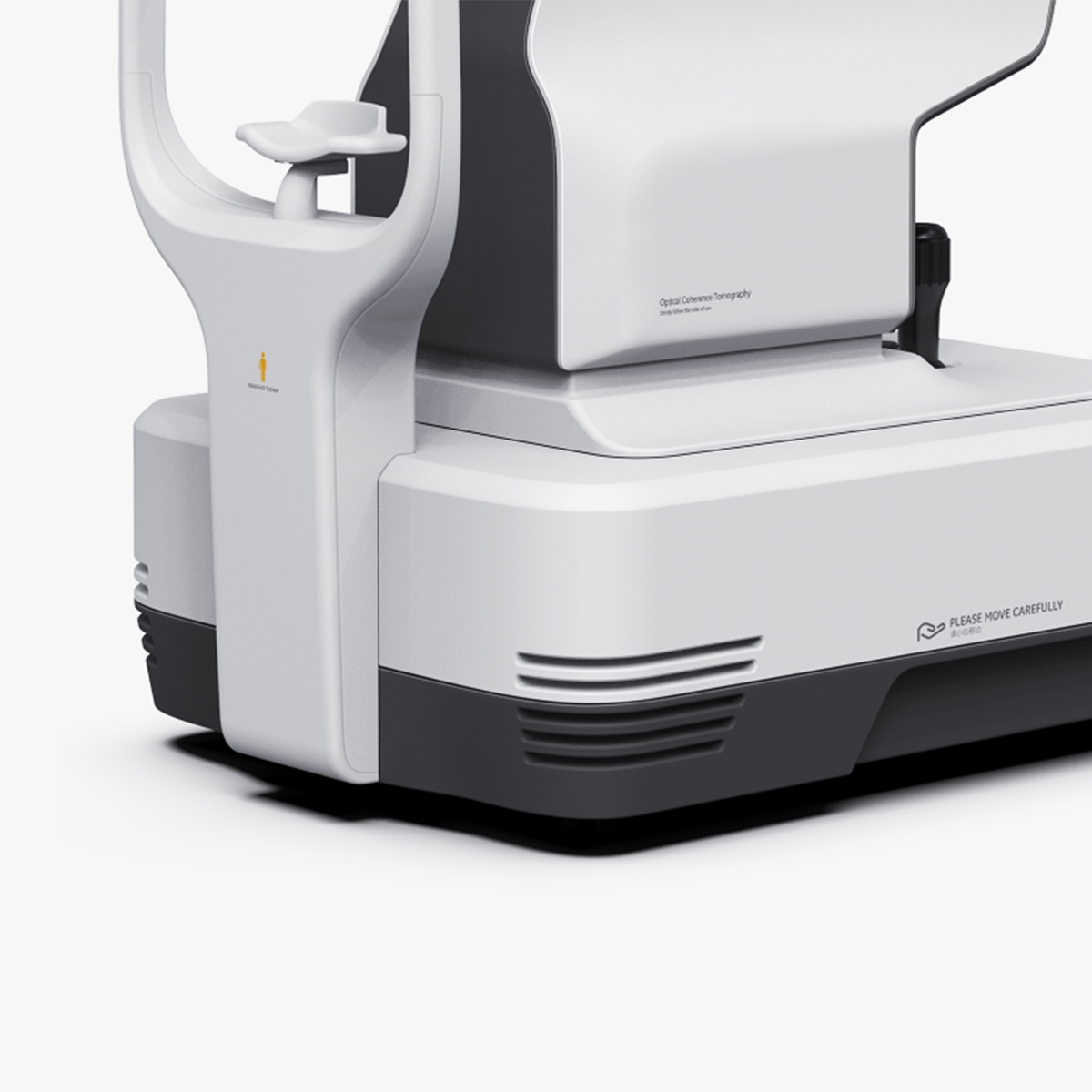 完整的大曲面包裹住主機(jī)的所有結(jié)構(gòu)件,深灰與白色的分色,整機(jī)充滿(mǎn)未來(lái)與科技感,賦予產(chǎn)品引領(lǐng)行業(yè)的使命;嵌入式臉托,隱藏式摳手等細(xì)節(jié)的設(shè)計(jì),盡量保證產(chǎn)品 設(shè)計(jì)元素的統(tǒng)一性,增強(qiáng)一體性。 手柄處黃色標(biāo)識(shí)圈作為品牌識(shí)別點(diǎn)將應(yīng)用到系列產(chǎn)品中,形成視微品牌自己的品牌形象特點(diǎn)。