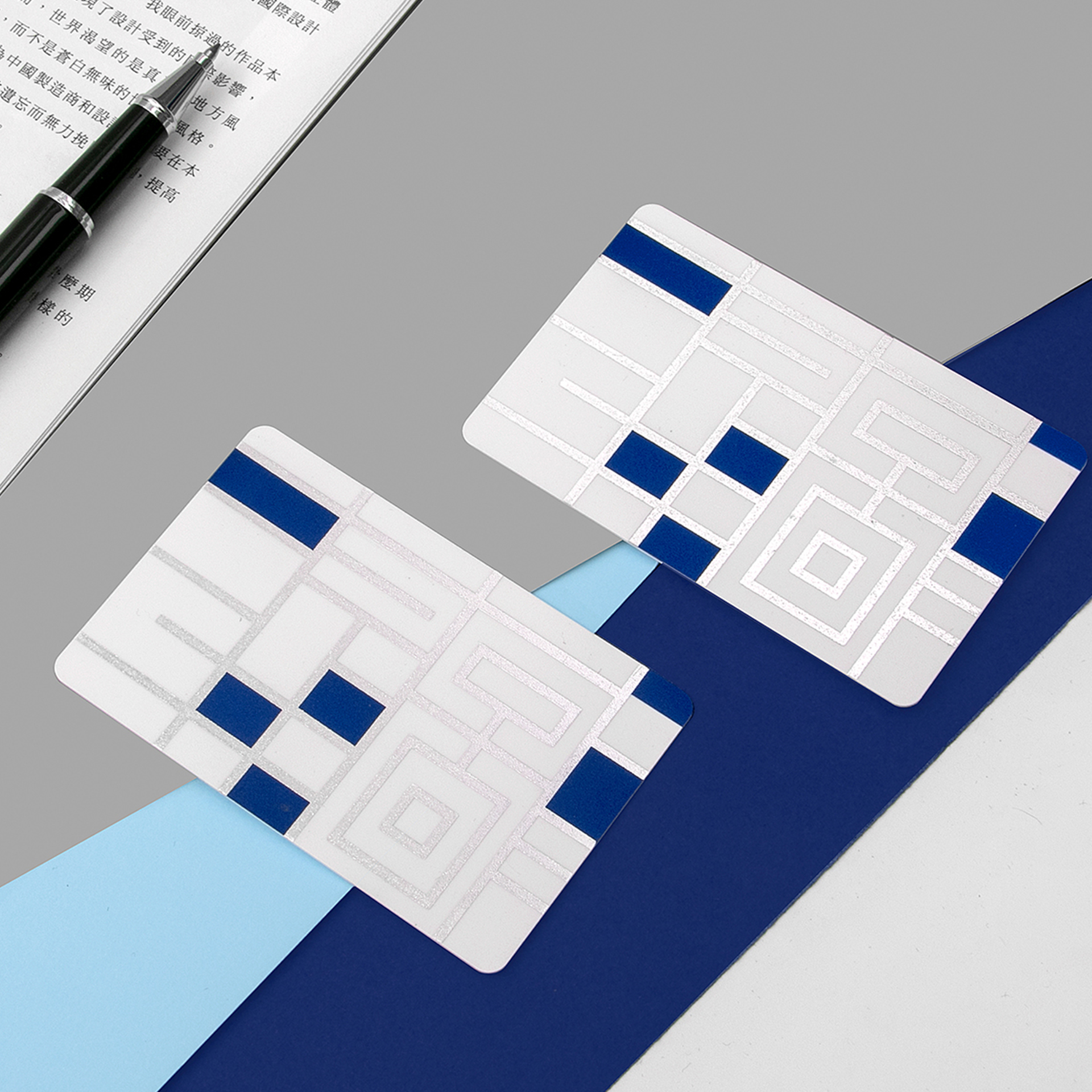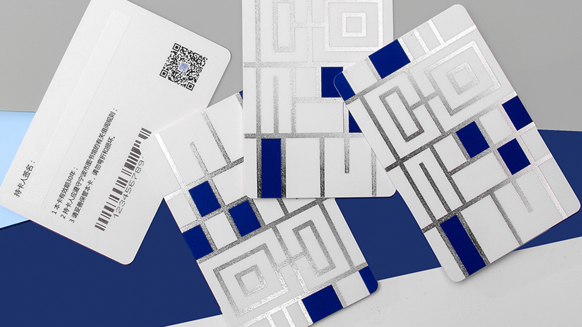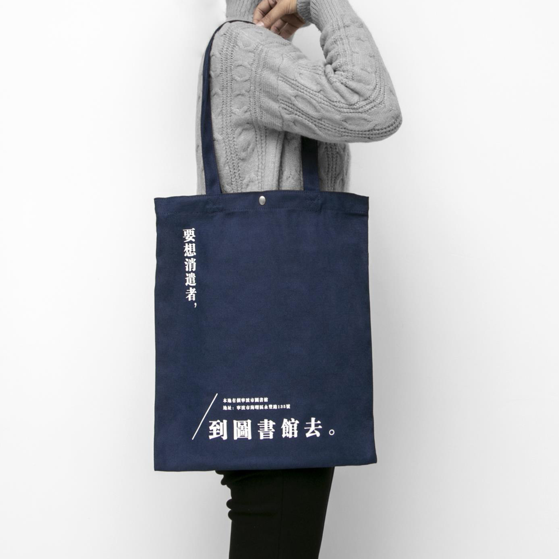 ②深深淺淺的藍色系塊面大膽拼貼,整體簡潔而富有童趣,營造出圖書館海納百川包容萬象的一面,無論你是什么人,走進圖書館,都是一個讀者?!靶吗^”系列圖形元素一確定,接下來與之前“甬圖”系列一樣,就是產(chǎn)品的元素應用了。