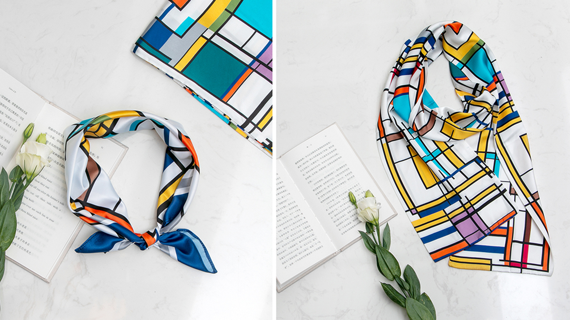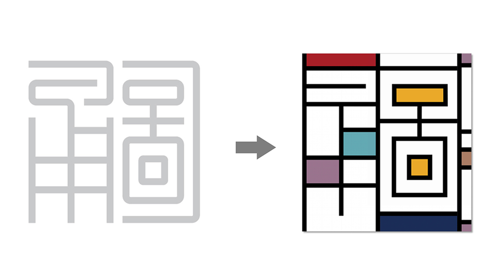 形式一:標識整體分為兩部分,一部分是"甬圖"二字使用了"篆法"的變形,另一部分是"寧波圖書館"書法字體,設計師用現(xiàn)代手法最大程度的還原了任繼愈先生的字體原貌,使之更加平衡穩(wěn)重,可視為一種歷史文化記憶。將新館建筑中提取的線面元素與蒙德里安風格結合,產(chǎn)生了最初版的應用圖形。但是純粹的蒙德里安元素,在圖書館文創(chuàng)的應用上總顯得有些許單薄,多次的更改與嘗試中,圖書館logo的出現(xiàn)讓設計師的眼睛亮了起來,同樣的塊面化元素,為什么不做一個結合呢?
