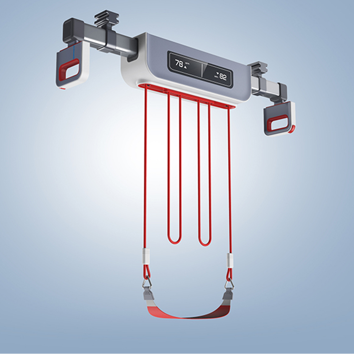 設(shè)計(jì)師給頂部配備了4套可安裝的模組,這樣可以保證覆蓋各種體重和身高的健復(fù)人員。醫(yī)療床的加入,使整體設(shè)備具備了更寬廣 的活動(dòng)空間和康復(fù)動(dòng)作,也能讓健復(fù)醫(yī)師更加方便操作。