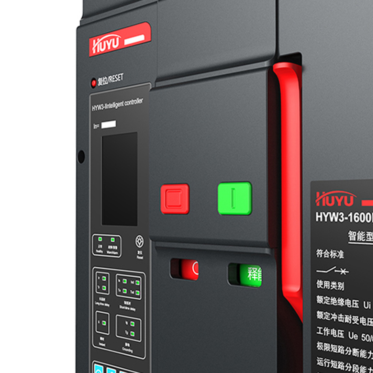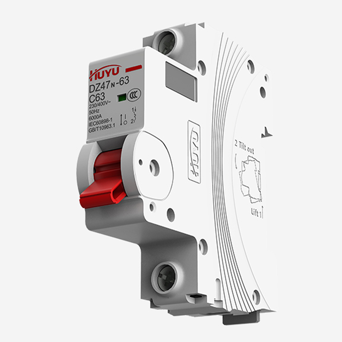 小型斷路器運(yùn)用微曲面和圓角,融合環(huán)字logo中U和H元素, 形成高山飛瀑的造型特征,同時在立體呈現(xiàn)效果上展現(xiàn)出雙手呵護(hù)、安全可靠的設(shè)計理念。在側(cè)面運(yùn)用日出東方曲線做為紋理,方 面起到散熱功能,同時增強(qiáng)產(chǎn)品的質(zhì)感,提升用戶在安裝過程中的觸感。