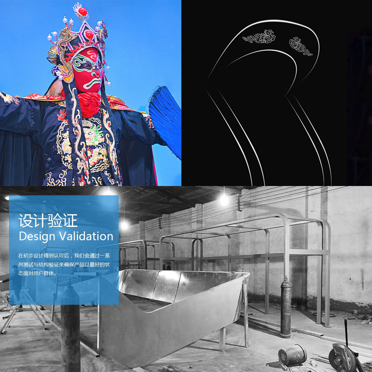 產(chǎn)品抽象化川劇臉譜裝扮的帽檐,以及帽檐兩側(cè)的緞帶,再將其重新結(jié)合為車庫(kù)的外形,并輔以傳統(tǒng)的二龍戲珠圖騰,增加其文化寓意。將城市傳統(tǒng)文化與現(xiàn)代化生活聯(lián)系,增強(qiáng)了城市現(xiàn)代化進(jìn)程中年輕用戶群體的文化認(rèn)同,同時(shí)也成為城市展示自己的一個(gè)有力的文化符號(hào)。