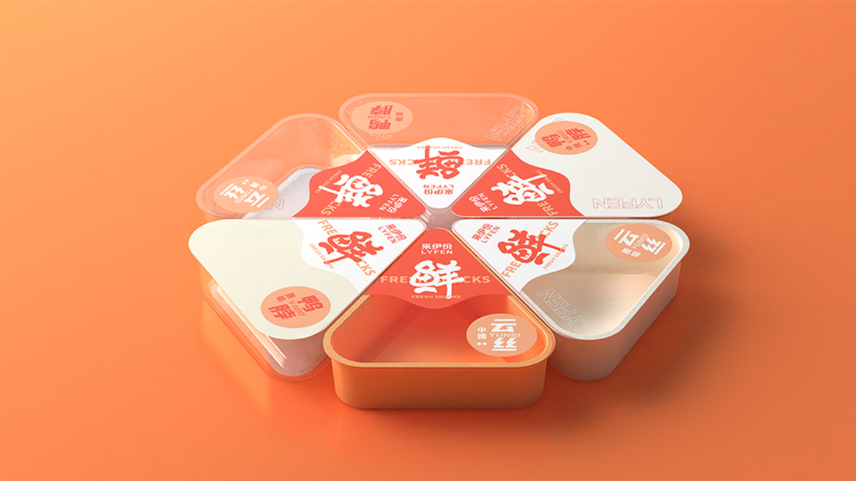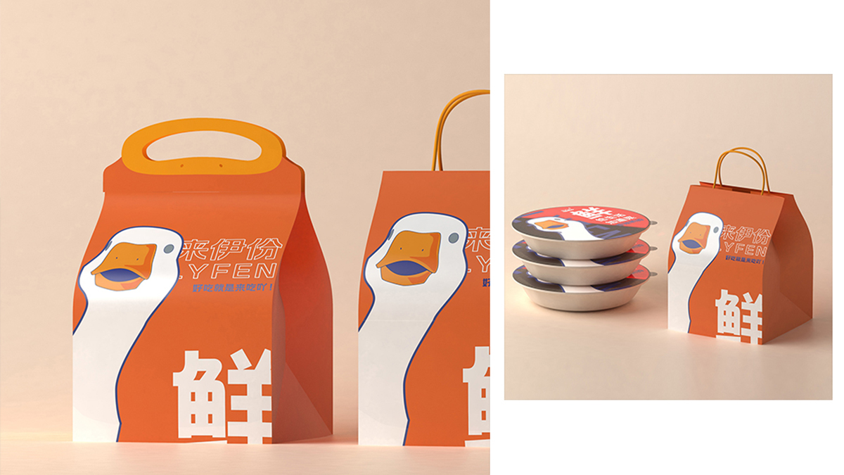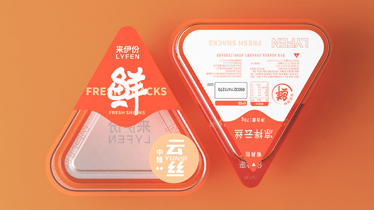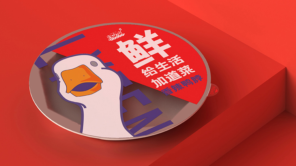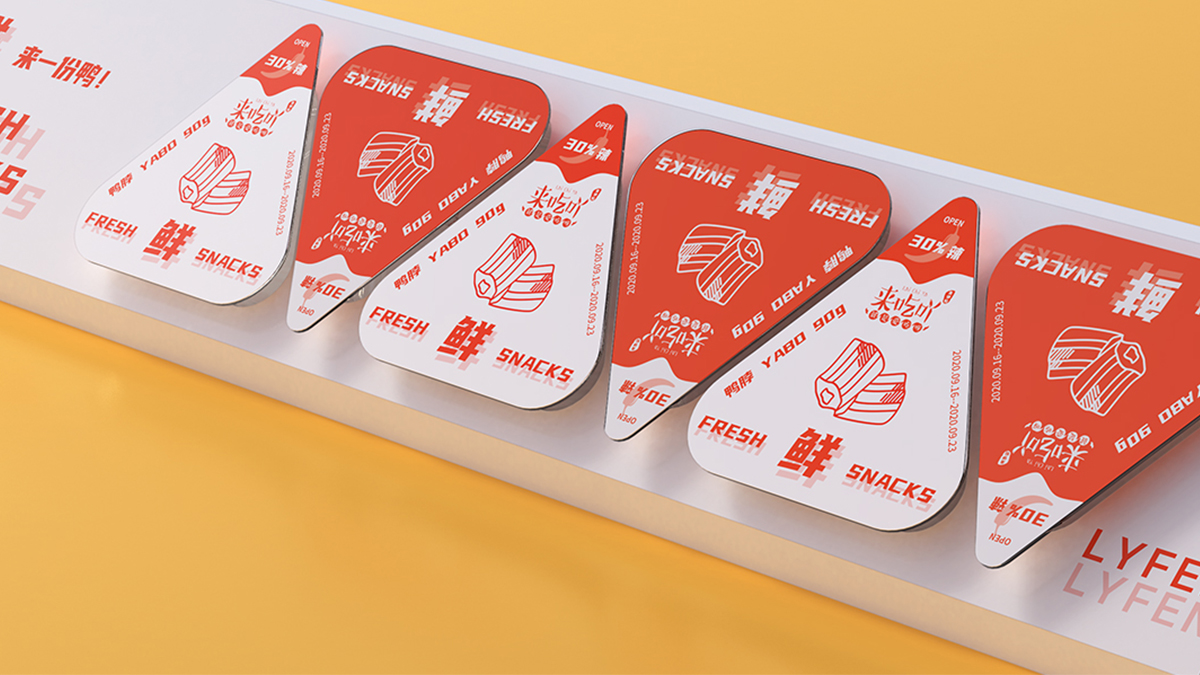 來(lái)伊份-給生活加道菜:八邊食盒,為味覺(jué)錦上添花。采用了中國(guó)傳統(tǒng)餐具錦盒的八邊造型,八也象征著八方來(lái)客,兼容并蓄,雅俗共賞的包容態(tài)度,與來(lái)伊份的品牌文化相符。底部貼紙內(nèi)附紙巾手套包,提升消費(fèi)者食用體驗(yàn)?;盍︴r食,運(yùn)用高飽和的明艷色彩和可愛(ài)年輕的鴨子形象提升視覺(jué)吸引力。
